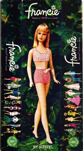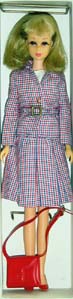1967- ツイスト・バービー 当時から私が持っていた子で、2631の服を着て売られていた。 日本仕様のツイストバービーの服 電気スタンドはフランシーのギフトセットにもセットされ ていたようだ。 日本仕様2619の服 ツイストバービーの窓付き外箱