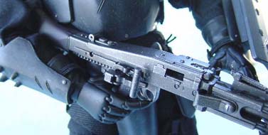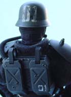 ソフビ部分に全体にメタリックグレーのような色が塗られ雰囲気は良い。しかし、私が買ったものは、肩のパッドが左右逆になっていて、修正に往生した。瞬着を使うと見事に白くなってしまうからだ。