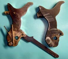 また、メインフレームのトリッガ-・スクリューやエス・スクリューが69年頃のモデルより細いスクリューが使われており、我家のピーメを見てみるとハンマースクリュー以外の2本は本来同じ太さが使われているはずなのに異なっているのが不思議だ。おそらく破損して改良型の太いボルトに改修されたものだと考えられる。そのため3本のボルトが全部太さが異なっているのである。