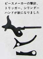 そして、初期のピースメーカーは表面が黒染めではなく金属M16のパーカー風仕上げのような色をしていたらしい。内部の塗り残しの部分の色からの判断だが、黒染めと明らかに違いM16のような色なのだ。