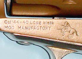 左写真はフレーム左側、ランパン・コルトのマークとCal.44-40 Long brank、MGC