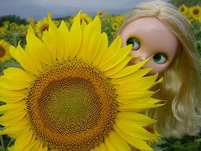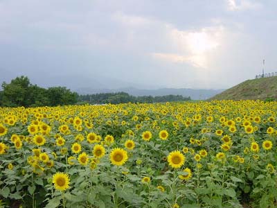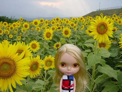 2001年9月 明野村ハイジの村前のヒマワリ畑にてブライス・モンドリアン |