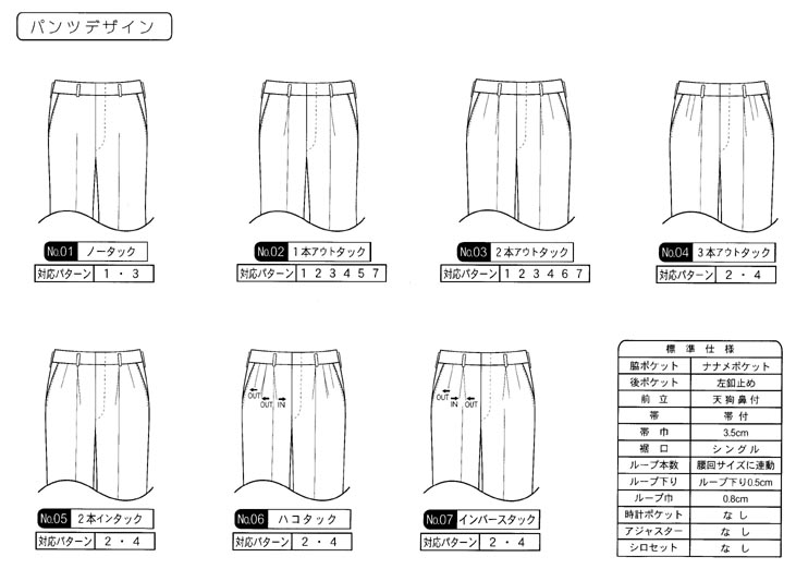 | 腰廻 | 尻廻 | ワタリ巾 | 股上 | 裾巾 | 腰廻 | 尻廻 | ワタリ巾 | 股上 | 裾巾 | |||||||