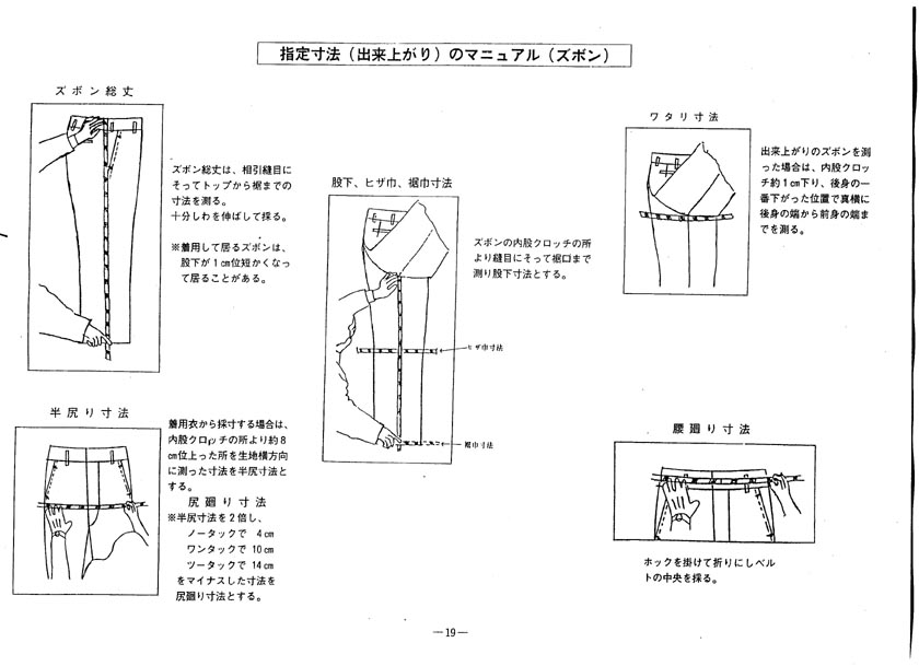 | 他の寸法指定、調整も可能ですのでメールにてご相談下さい。 (股上・股下・ワタリ幅・ヒザ幅・スソ口幅の寸法指定が可能です。 必ず指定寸法マニュアルを御覧下さい |