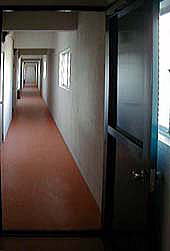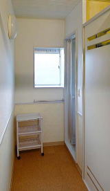 | ■鉄筋コンクリート3階建です。 | ■個室は6畳間に1畳の収納・半畳の洋服入・本棚、それにHI調理器付の 流し台があります。 もちろん、エアコン・照明・CATV・電話配線もあります。 |