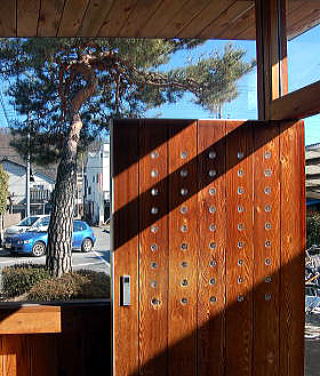 玄関から外を見る |
