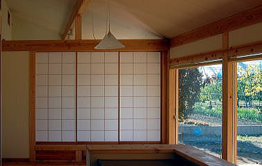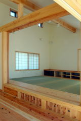 オープンキッチン 畳の間:30cm上がっている。 障子を閉めた畳の間 ロフトのある個室