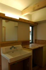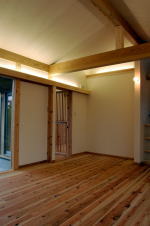 板の間の間接照明の様子 洗面脱衣も間接照明 板の間