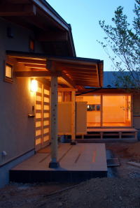 ウッドデッキテラス側からの夜景近景 玄関の夜景近景