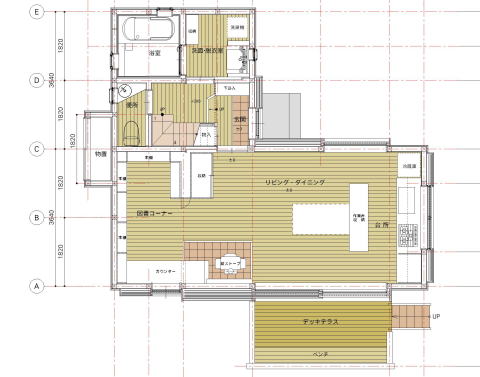 居間・食堂・台所・図書コーナー・玄関