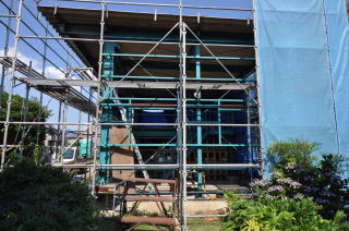 改修工事は外壁を全て取り外して、骨組みのみの状態にしてから始まりました。