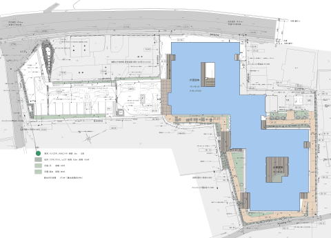 一つは、不整形な土地にどのように建物や設備それに外構を配置するかがポイントであった。