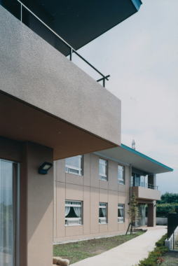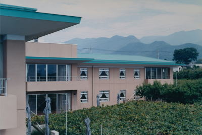 スカイコート勝沼の計画は、若いころからボランティア活動をされていた教員である方からの依頼で始まりました。社会福祉法人の設立からお手伝いすることになり、県の障害福祉課等の関連部署との打ち合わせを経て、事業コンセプト・事業ビジョン、建築計画案、事業予算の設定等を行い申請書類作成提出を無事終えてめでたく認可されました。認可後、実施設計のまとめ施工業者の選定を行い請負者の決定、工事着工 (工事監理)途中検査等を経て工事が完了し、引き渡し、開業しました。