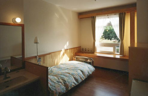 個室は、条件の許す範囲で大きく取りました。東西南北それぞれの向きの部屋があり。景色・日当たり・風通し等の条件は異なりますが、プライバシーの確保・静寂感・ゆったりとした雰囲気・インターネットの利用・家電の利用などの対応を可能としました。