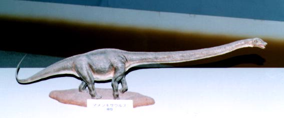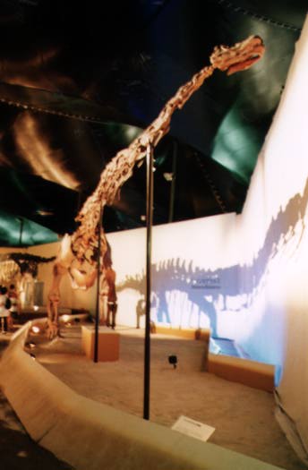 マメンチサウルスは中国の竜脚類で頚がやたら長い。焦点距離28mmのカメラでは とても全体は入らなかった。まずは模型で頚と胴の比率を見て下さい。