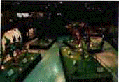 群馬県中里村の恐竜センターの タルボサウルスの復元像も身体を水平に延ばした姿で