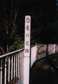 299号線を中里村に向かって行くと道路のカーブの右側にその足跡のついた