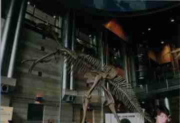 デイプロドクス、エドモントサウルス、恐竜の卵)と鯨とマンモスなど絶滅哺乳類の骨格とペンギンとキリンと猿とが展示されている