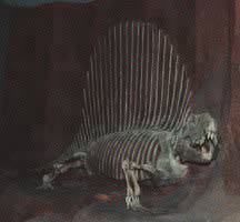 恐竜ホールに入る手前に有名なジメトロドンのレリーフがありました。