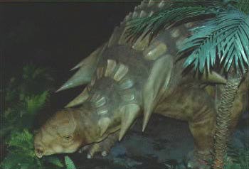 ウロロフスの全身骨格や アンキロサウルス類の棍棒状に先の膨らんだ尾などが壁に